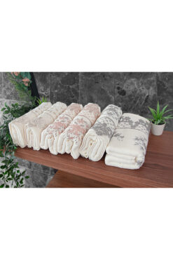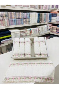 ihvan online Güpürlü Kadife Nakış İşlemeli Desenli Kutulu Lüks Çeyizlik 6’lı El Yüz Havlu Seti 50×90 – 00274