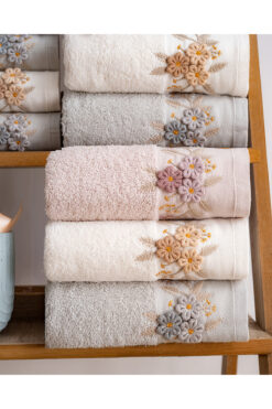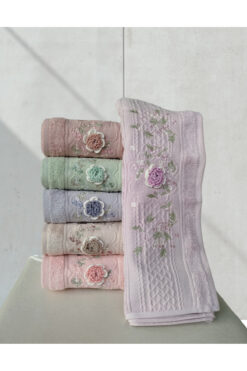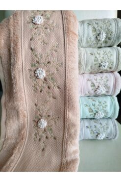 Hazangülü Buldan Üretimi Çeyizlik Nakışlı Eyşan Pamuk 6’lı El/Yüz Havlusu I 50×90