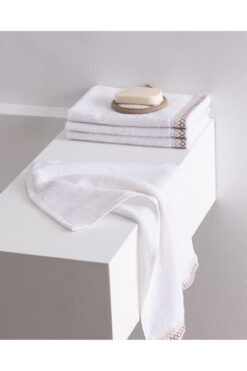 Madame Coco Topaze 4’lü Pamuklu El Havlusu – Beyaz/Bej – 30×45 cm