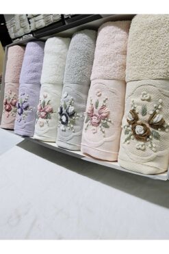 Fiesta Home Elite Bukle Jakarlı Nakışlı Pamuk Havlu 50×90 (6 Adet)