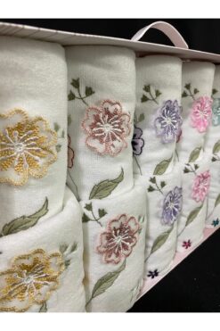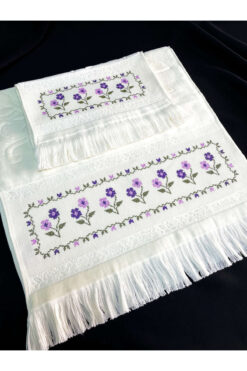 Sahra Çeyiz Nakış Özel Tasarım Kanaviçe Nakış İşlemeli Kadife Etamin Çeyizlik 2’li Havlu Seti