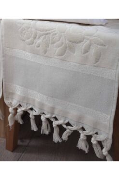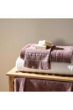 SARİNA renkli bir dünya Retro Saçak Detaylı Pudra Banyo Havlu Takımı 50×90 70×140