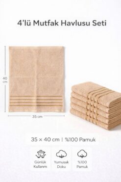 TEXTİLES MAGİC LAMP 4’lü Bej Havlu Seti 35 x 40 – Mutfak & Banyo – %100 Pamuk
