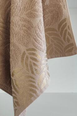 Sevim 2’li Jakarlı Yaprak Desenli %100 Pamuk El Yüz Havlusu-50x90cm-Kapuçino