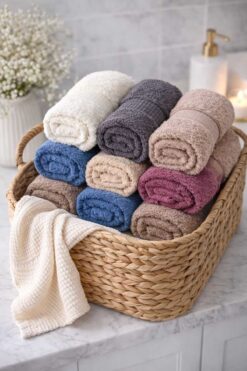 POKUT 6’lı Lüks Pamuklu El ve Yüz Havlusu Seti (50×90 cm) – Yumuşak Dokulu Yüksek Emici Renkli Havlu