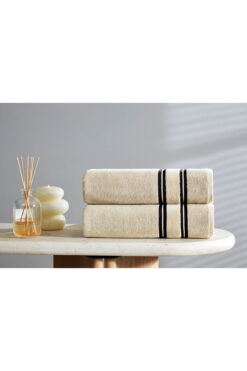 KAYABEY HOME Gri 2’li Set Büyük Boy Banyo Havlusu Duş Vücut Havlusu Yumuşak %100 Pamuk Çizgi Desenli