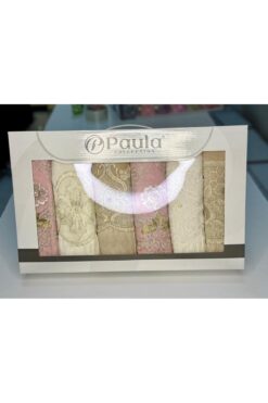 in disco KUTULU ÇEYİZLİK EL YÜZ HAVLUSU Saten Işleme Desenli Güpürlü Kutulu Lüks Çeyizlik 50×90 6’lı