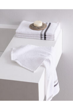 Madame Coco Rosabelle 4’lü Pamuklu El Havlusu – Beyaz/Gri – 30×45 cm