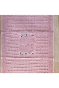 AYHANHOME 3 Adet Pudra Renk Nakışlı Ayak Havlusu %100 Pamuk Ölçü:50×70