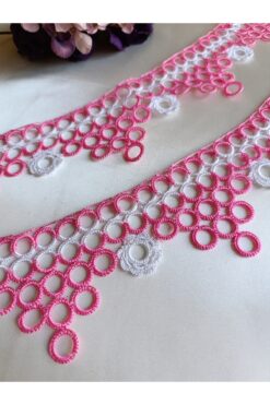 Bircan Hediyelik Pembe Halkalı Tığ Oyası Havlu Kenarı 2 Parça