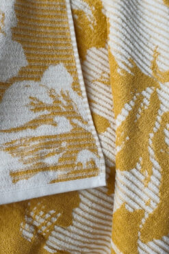 Sevim İpliği Boyalı Desenli %100 Pamuk Banyo Havlusu – Yüksek Su Emici -90×150 Cm- Hardal