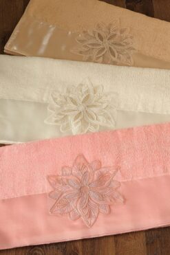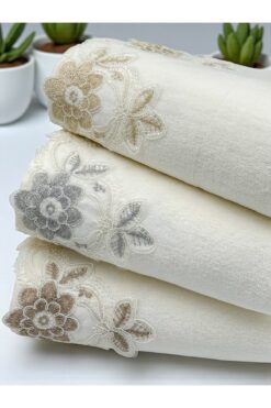 AYHANHOME 3 Lü Kadife Lüks Fransız Güpürlü Çeyizlik 50×90 El ve Yüz Havlusu