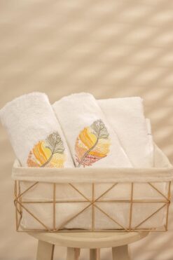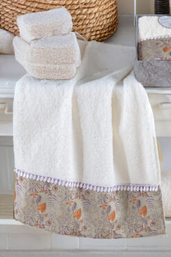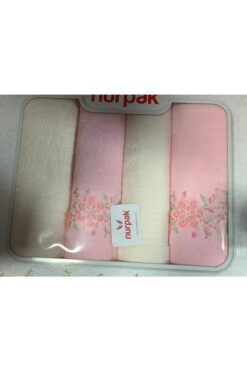 Nurpak Nakışlı Havlu Seti Krem-pudra