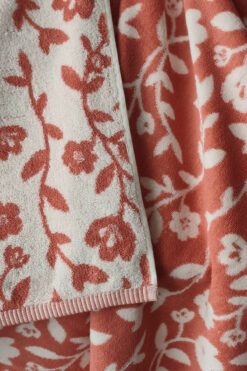 Sevim Çiçek Desenli İpliği Boyalı Kiremit Banyo Havlusu – Yüksek Su Emici & Yumuşak – 90×150 Cm-%100 Pamuk