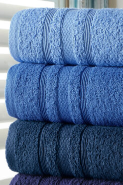 Chakra Derin Yüz Havlusu 50×90 cm Ekru/Marin Mavi