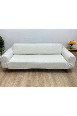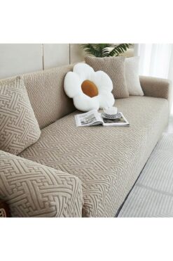 Faiend Jakarlı 3 3 1 1 krem Lastikli Kanepe Örtüsü | Lastikli Koltuk Örtüsü | koltuk kılıfı Takımı