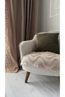 DİLETTO Oturma Yerini Kapatan Dalgalı Ponponlu Koltuk Örtüsü | Berjer Örtüsü 70×95 Cm Bej