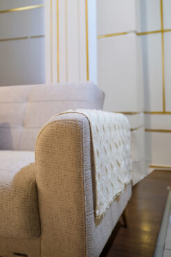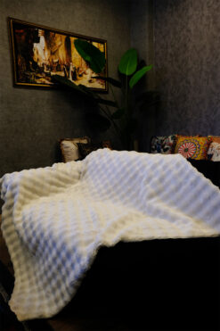 aymira home Peluş Koltuk Şalı Örtüsü Pofuduk Bubble Krem Çok Amaçlı Baklava Desen 150×150 cm