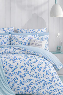 İQON Lastikli Çarşaflı Nevresim Takımı Çift Kişilik SARMAŞIK MAVİ