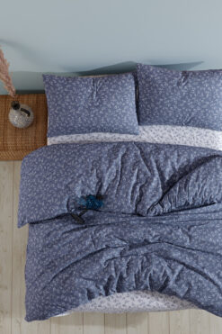 LADYNİL Lastikli Çarşaflı %100 Pamuk Çift Kişilik Nevresim Takımı Mavi Başak