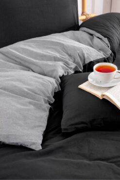 Valezium SİYAH-ANTRASİT ÇİFT KİŞİLİK NEVRESİM TAKIMI LASTİKLİ ÇARŞAF VE 2 YASTIK KILIFI