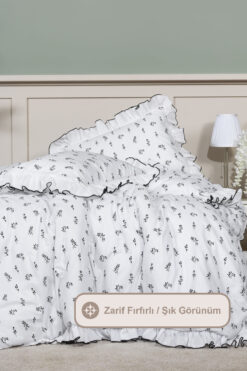 Elart Sonya Nevresim Seti Çift Kişilik Pamuklu Fırfırlı (200×220 cm) Krem