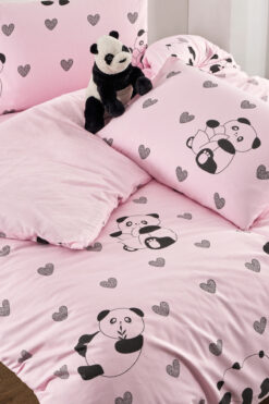 Valezium PANDA PEMBE ÇİFT KİŞİLİK DESENLİ NEVRESİM TAKIMI LASTİKLİ ÇARŞAFLI VE 2 YASTIK KILIFLI