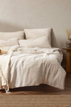 BESTİNA GOLD Harmony Hues İpliği Boyalı Doğal Çift Kişilik Nevresim Takımı (Çarşafı Lastikli)