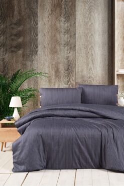 Lotusline Home Minikaro Füme Tek Kişilik Pamuklu Nevresim Seti Çift Taraflı