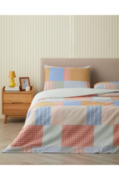 English Home Patchform Kolay Ütülenir Çift Kişilik Nevresim Seti 200×220 cm Mavi – Bordo