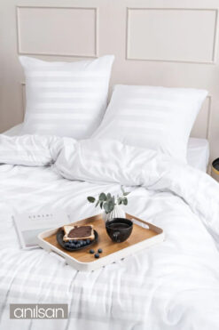 Anılsan Çizgili Çift Kişilik Düğmeli Nevresim Yorgan Kılıfı %100 Pamuk, 83tel