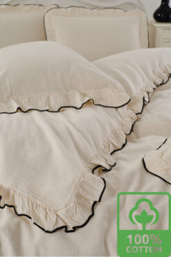 WEXSA %100 Pamuk Doğal Natural Boyasız Çift Kişilik Fırfırlı Nevresim Seti
