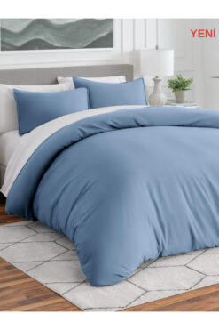Always Çarşafı Lastikli Çift Taraflı Çift Kişilik Nevresim Takımı Lacivert-Gri