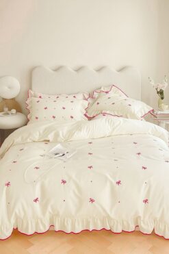 Uçkan home Soft elegance fırfırlı çift kişilik nevresim seti desenli süs dikişli %100 pamuk