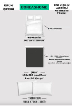 Boreas Home LYDİA Çarşafı Lastikli TEK Kişilik Nevresim Takımı