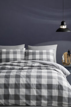 Lotusline Home Minikaro Füme Tek Kişilik Pamuklu Nevresim Seti Çift Taraflı