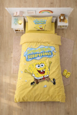 Elay Tekstil Sünger Bob Desenli Tek Kişilik Nevresim Takımı (Çarşafsız)