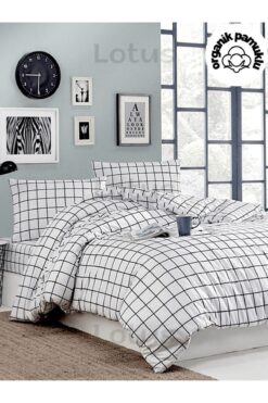 Lotusline Home Minikaro Siyah Beyaz Tek Kişilik Pamuklu Nevresim Seti Çarşafsız