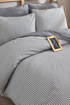 Lotusline Home Minikaro Füme Tek Kişilik Pamuklu Nevresim Seti Çift Taraflı