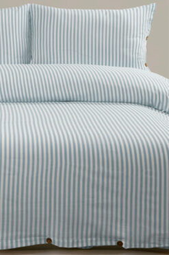 Magnolia Bohem Çizgili Tek Kişilik Nevresim Takımı – Ahşap Düğmeli, Lastikli Çarşaflı, Pamuklu