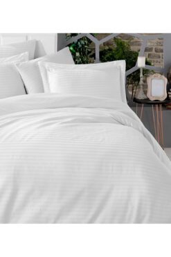 MyStory Home Lastikli Çarşaflı Tek Kişilik Nevresim Takımı Saten Beyaz