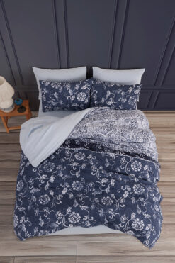 Always Lastikli Çarşaflı Çift Taraflı Tek Kişilik Nevresim Takımı Lacivert-Gri