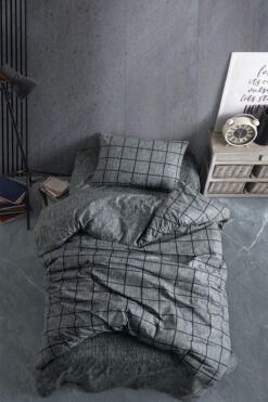 Casa Carina Ranforce Tek Kişilik Lastikli Çarşaflı Nevresim Takımı Kare Siyah