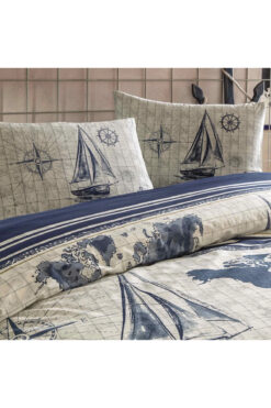 Taç GENÇ MODASI RANFORCE TEK KİŞİLİK NEVRESİM TAKIMI MUNA LACİVERT