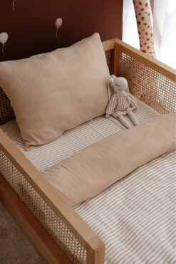 TBA COLLECTION Müslin Montessori Nevresim Takımı (100×200) | Line Series – Beige