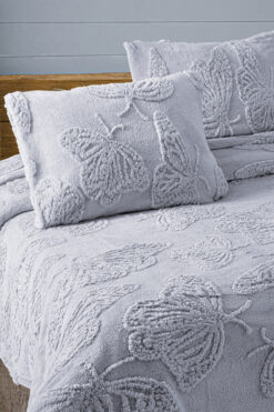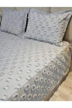 diabella Ponpon Desenli 3 Parça Çift Kişilik Yatak Örtüsü Gri