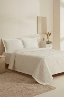 Çeyiz Diyarı Ultrasonik Kapitoneli Sena Çift Kişilik Yatak Örtüsü Krem