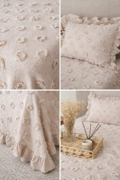 Enlora Home Kapitone Yatak Örtüsü Seti Çift Kişilik Efil Bej-Gri