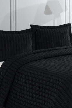 BİRHOME Terry Jakarlı Şönil Çift Kişilik Yatak Örtüsü (siyah)