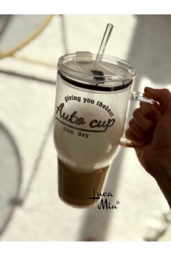 Luca Mia Laletta Mika Kapaklı Cam Pipetli Cam Termos/Bardak 1200 Ml